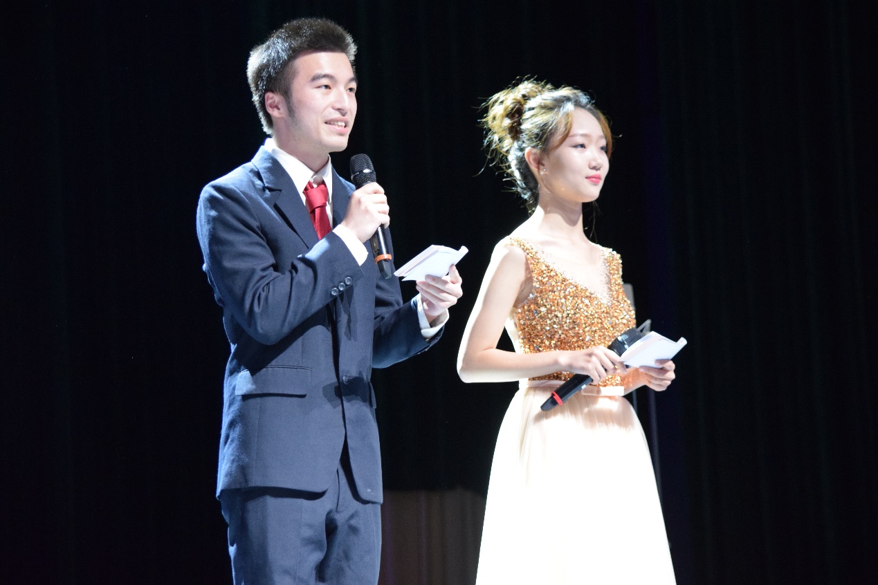 灯光投射在舞台角落的白色钢琴,优雅的衣裙上淌动着《天路》的流光,外国语学院作为第一个学院上台献唱,为听众带来了一场视听盛宴。活泼的背景乐响起,公共经济与管理学院的同学们带着《歌声和微笑》,用童年的歌曲点燃青春的热情。层层绽放的《茉莉花》先后被会计学院和人文学院演绎,两朵茉莉同样洁白无瑕,却有着各自风骨。紧接着,身着红裙和黑色西装的国际工商管理学院同学们唱着红歌《十送红军》,深情回望我党奇雄瑰丽的历史。灯光渐暗,《当那一天来临》之际,经济学院的同学们整装待发,歌唱出为胜利勇敢前进的决心。随后,作为演出嘉宾的留学生合唱团为大家带来《Sing Sing Sing》,jazz的背景乐一出现,一下子将现场气氛推向高潮。