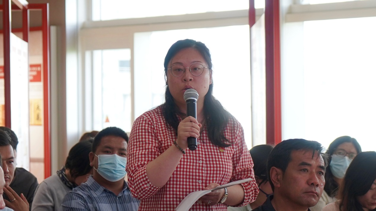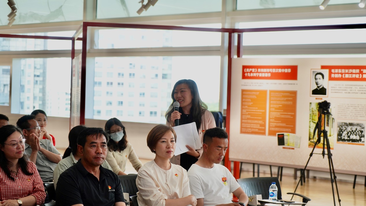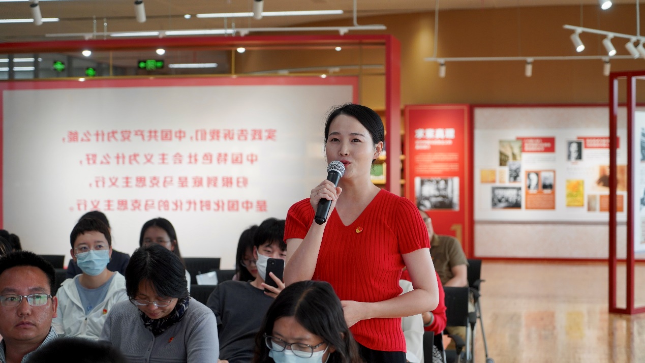 机关第五支部张永铃老师就参观环节谈了自己的感受,她从马克思的生平经历中体会到永不放弃的精神会支持人们克服一切磨难,从许书记的专题党课中领悟到国际视野对于教育高质量发展的重要意义。