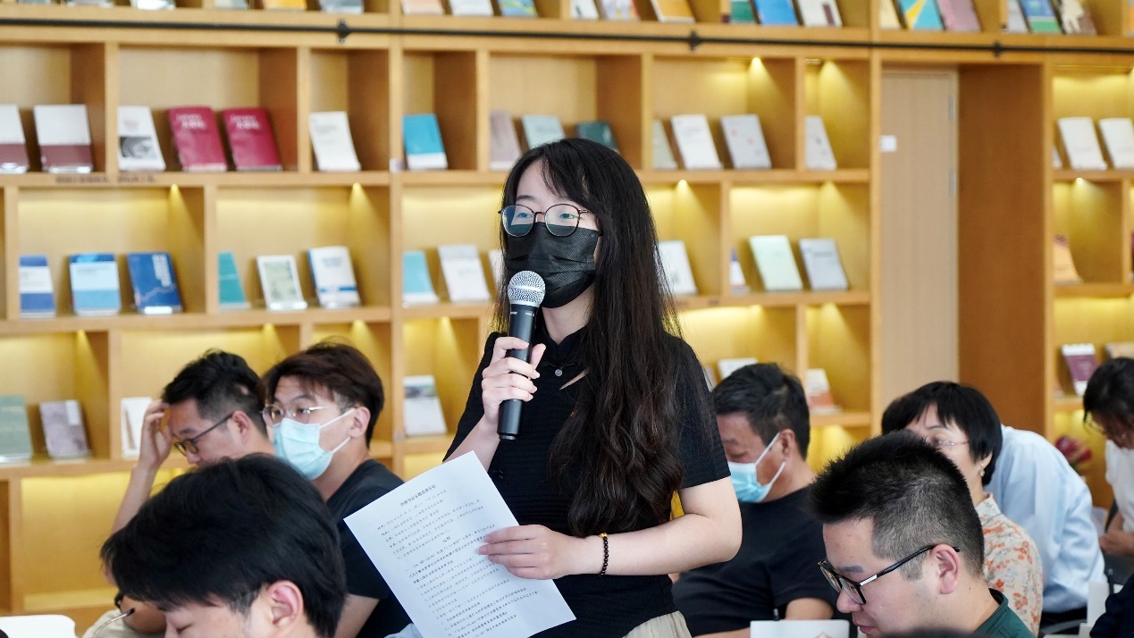 在师生代表交流学习体会环节,马克思主义学院2023届硕士毕业生刘馨遥首先分享了自己作为一名“准教师”的心得。她谈到自己即将入职上海财经大学附属中学,实现从学生到教师的身份转变。在许书记的专题党课中她感受到了习近平总书记深厚的教育情怀,会在实践中磨练自己、在求索中提高、在热爱中工作,努力成为一名有理想信念、有道德情操、有扎实学识、有仁爱之心的“四有”好老师。