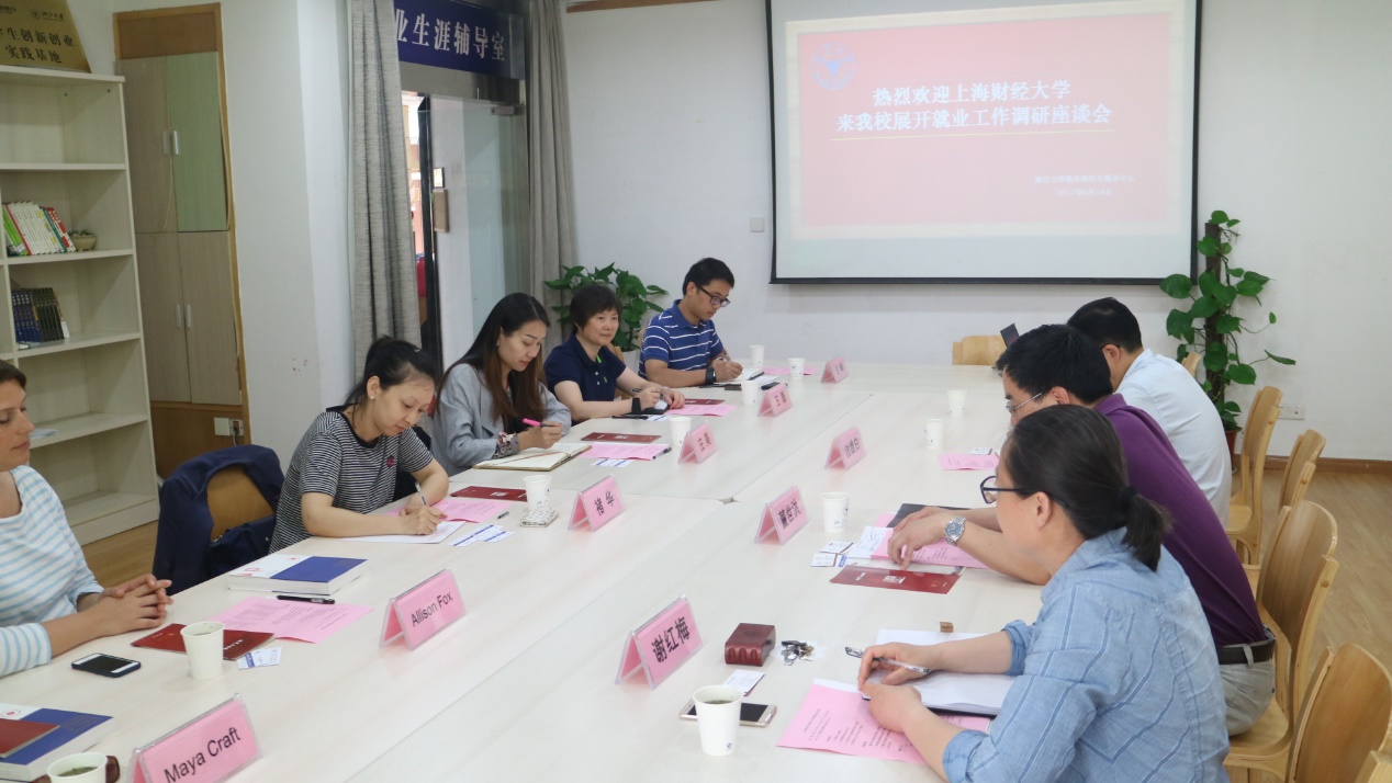 6月14日下午,我校学生就业指导中心主任褚华率就业工作团队与密歇根州立大学职业服务代表团一行赴浙江大学就业指导与服务中心开展工作调研。浙江大学就业指导与服务中心主任董世洪、副主任谢红梅和对外联络部主任沈雄白出席调研会。