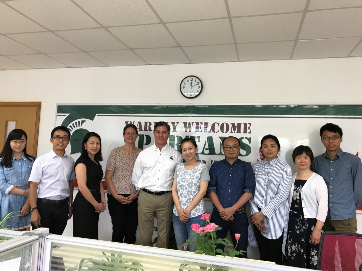6月18日,密歇根州立大学职业服务代表团顺利结束此次访问行程。我校学生就业指导中心全体人员为该代表团举行了欢送活动。