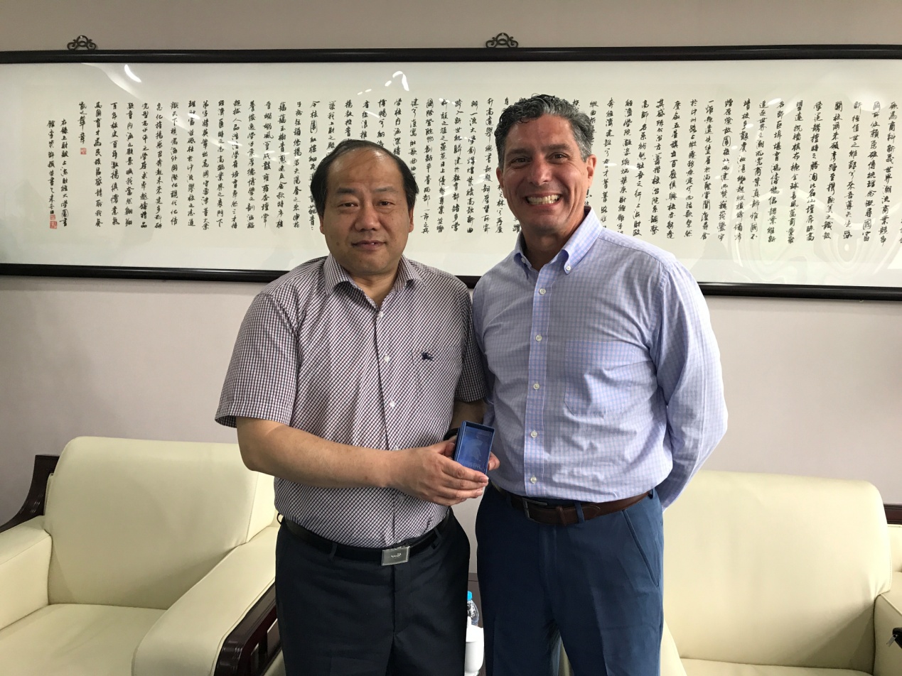 朱鸣雄书记首先对Eric Doerr先生一行的到来表示热烈的欢迎。朱书记介绍了中国高等教育状况、我校的办学理念和学生工作情况,强调学校始终致力于培养具有国际视野的高素质创新型人才。朱书记期望上海财经大学和密歇根州立大学能在学生工作、教学管理与科学研究等方面继续开展深入合作,并预祝密歇根州立大学职业服务代表团访问顺利。Eric主要介绍了密歇根州立大学的学生规模、就业去向和优势学科。Doerr先生表示密歇根州立大学职业发展中心和上海财经大学学生就业指导中心有着多年的合作基础,期待双方未来能在多个领域开展更多具体的合作。双方还就中美文化差异、中美教育模式差异和中美大学生实习就业方式的异同进行了交流与讨论。最后,Doerr先生代表密歇根州立大学向我校赠送了纪念礼物。
