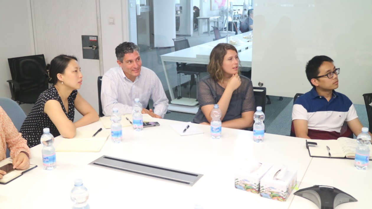 两个半小时的交流中,老师们围绕校企合作、市场拓展和就业信息等进行了充分讨论。校企交流方面,老师们主要在中美不同的教育背景下探讨了校企合作形式、校级和院级层面与企业的交流沟通、合作关系的衡量标准、以及校园宣讲会、招聘会的举办形式、费用和意义等。除此之外,不同年龄层学生的就业心态、毕业生就业倾向、就业率的计算、就业部门的职责等问题也是大家讨论的热点话题。