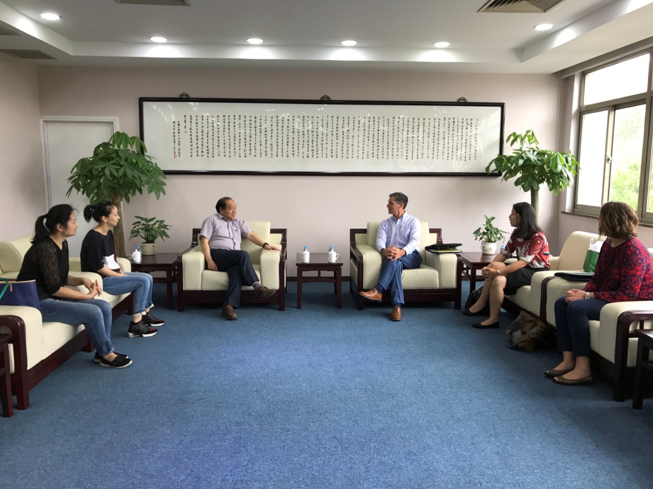 6月12日上午,校党委副书记朱鸣雄、学生就业指导中心主任褚华、副主任汤玲莉和生涯教育主管蒋峰等在行政楼亲切会见了密歇根州立大学职业服务代表团。
