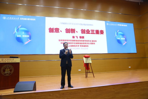 常务副校长徐飞老师和校党委副书记朱鸣雄老师共同为三创论坛揭牌。