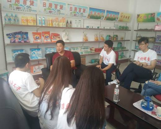 由于提前完成了问卷调查任务,今天的调查在时间节奏上相对充裕,使我们有条件深入了解和追问一些我们关心和感到困惑的问题。我们集体走访了一个乡镇电商服务中心负责人、一个颇有互联网见识的村支书、一个当地农村超市老板,并与当地邮政系统的工作人员简单交谈。