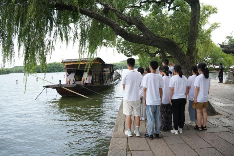 7月7日下午,调研团队前往嘉兴南湖进行参观学习,从百年党史中汲取红色力量、传承奋斗精神。同学们登上湖心岛,走过烟雨楼,在红船之畔驻足瞻仰,感受历史过往,感悟红船精神,体会革命先烈的拳拳赤字之心。在南湖革命纪念馆内,同学们全面了解了中国共产党波澜壮阔的百年征程,深刻感受了一代代中国共产党人的初心使命,纷纷感慨革命先烈的伟大精神,并在卞梁老师的带领下,同学们在纪念馆的出口留言板处写下了参观体会、对未来的展望与责任担当,以及上财“厚德博学、经济匡时”的校训。