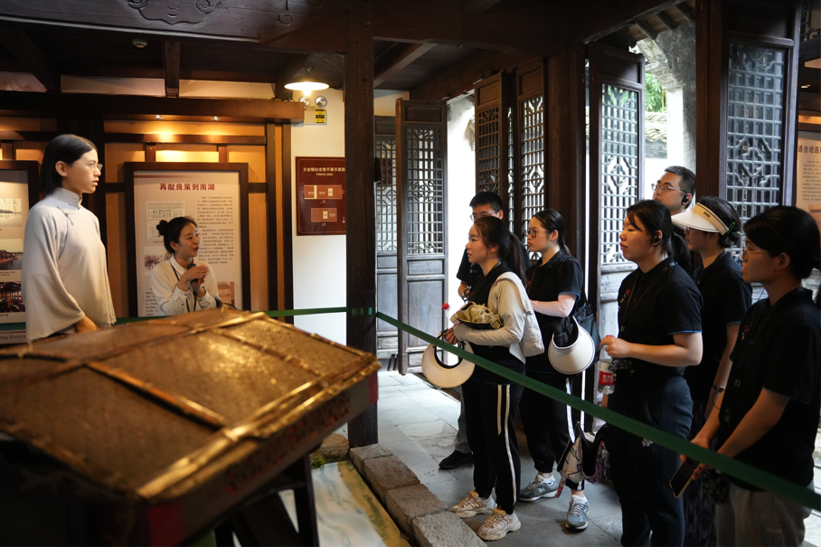 7月2日下午,上海财经大学千村调查桐乡调研团队至桐乡市博物馆进行参观。博物馆设有《凤栖梧桐—桐乡历史文化陈列》《琢玉良渚—良渚文化玉器精品展》《翰墨撷英—馆藏古代书画精品展》三个固定展和两个临时展厅,用照片、书画作品、文物、视频等形式,再现了桐乡人民的精神风貌,展示了桐乡源远流长的深厚历史文化底蕴,让同学们“穿越”七千年,走进桐乡历史,享受视觉盛宴,目睹文化魅力,了解、认知桐乡的过去,感受桐乡的劳动精神与文化传统。此外,同学们还参观了徐肖冰侯波纪念馆,徐肖冰是中国新闻纪录电影事业的奠基人,他与战友以摄影机为武器,亲临战争一线,用鲜血和生命换来一个个真实、难忘的瞬间,向后人传递不屈不挠、艰苦奋斗的精神。