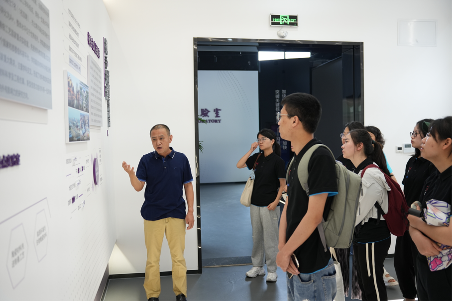 7月5日上午,调研团队前往崇福农创园开展调研活动。崇福农创园围绕“今后农业谁来做”和“今后农业怎么做”两大命题,通过提供孵化实训基地、技术平台、农创服务等,来吸引大学生创业,培养新型农民,从而推动农业发展。同学们在崇福农创中心张益的带领下,先后参观了“小虫草堂”、“若慕植馆”、“桑在云间”等优秀农业创客企业,领略了非遗文化与数字化技术相结合、一二三产业融合发展所带来的风采,并充分体会到疫情在对初创型小微企业产生冲击的同时,也在一定程度上促进了企业在销售环节的数字化发展。
