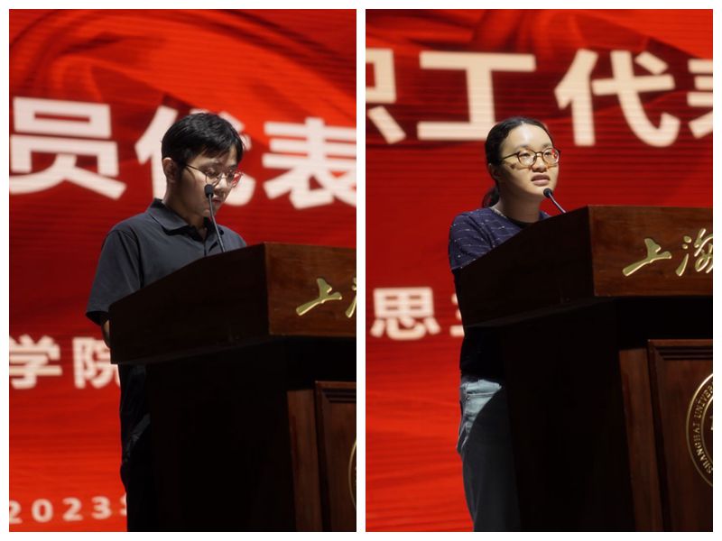 随后,师生学员代表发言。商学院学生入党积极分子袁月表示,要努力向书本学习,向身边的老师和同学学习,在实践中不断提升自己的认知水平,提高自己的综合素养,全心全意为同学们服务,时刻以一个党员的标准来要求自己,为中国式现代化贡献一份力量。