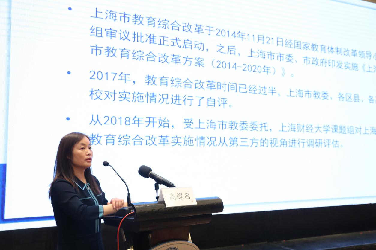 上海财经大学高等教育研究所副所长高耀丽,从研究背景、研究设计、数据采集与研究成果四个方面分享了《上海市教育综合改革实施情况评估研究》,并介绍研究成果《迈向教育现代化之路 上海市教育综合改革进展报告(2014-2019)》一书。
