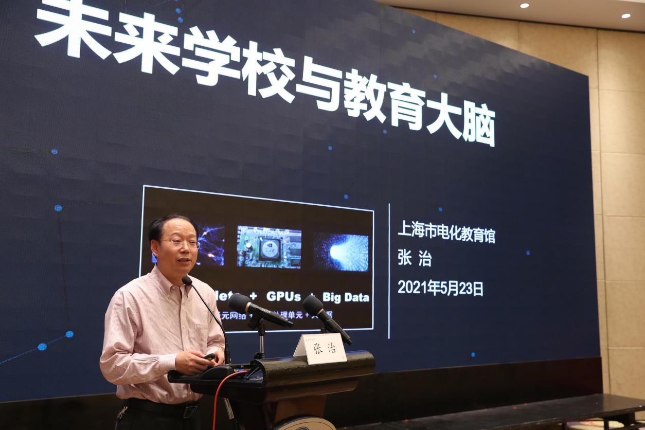 上海市电化教育馆馆长、特级教师张治分享了关于未来学校与教育大脑方面的研究。并对学校进化及未来新图景、3.0时代学校新图景的样态等方面进行了畅想与图解。