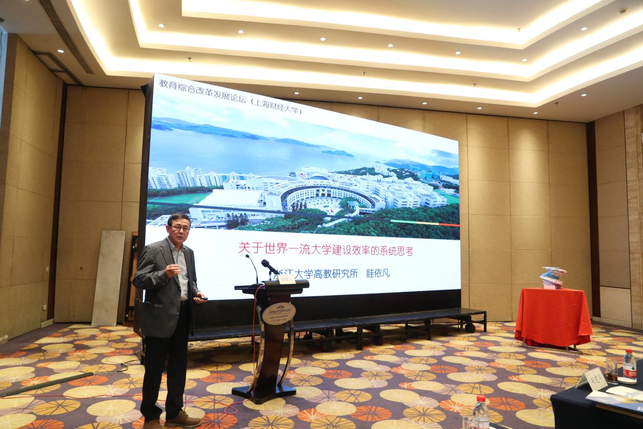 本次论坛共包含四场主题报告。第一场主题报告伊始,浙江大学求是学者、高等教育研究所所长,中国高等教育学会学术委员会副主任眭依凡教授做主题报告《关于“双一流”建设效率的系统思考》。从世界一流大学概念及其要素、世界一流大学建设高校的遴选、一流学科解读及其与一流大学关系、一流大学的治理现代化和创新人才培养:一流大学的核心使命五个方面对“双一流”建设效率问题进行系统分享。