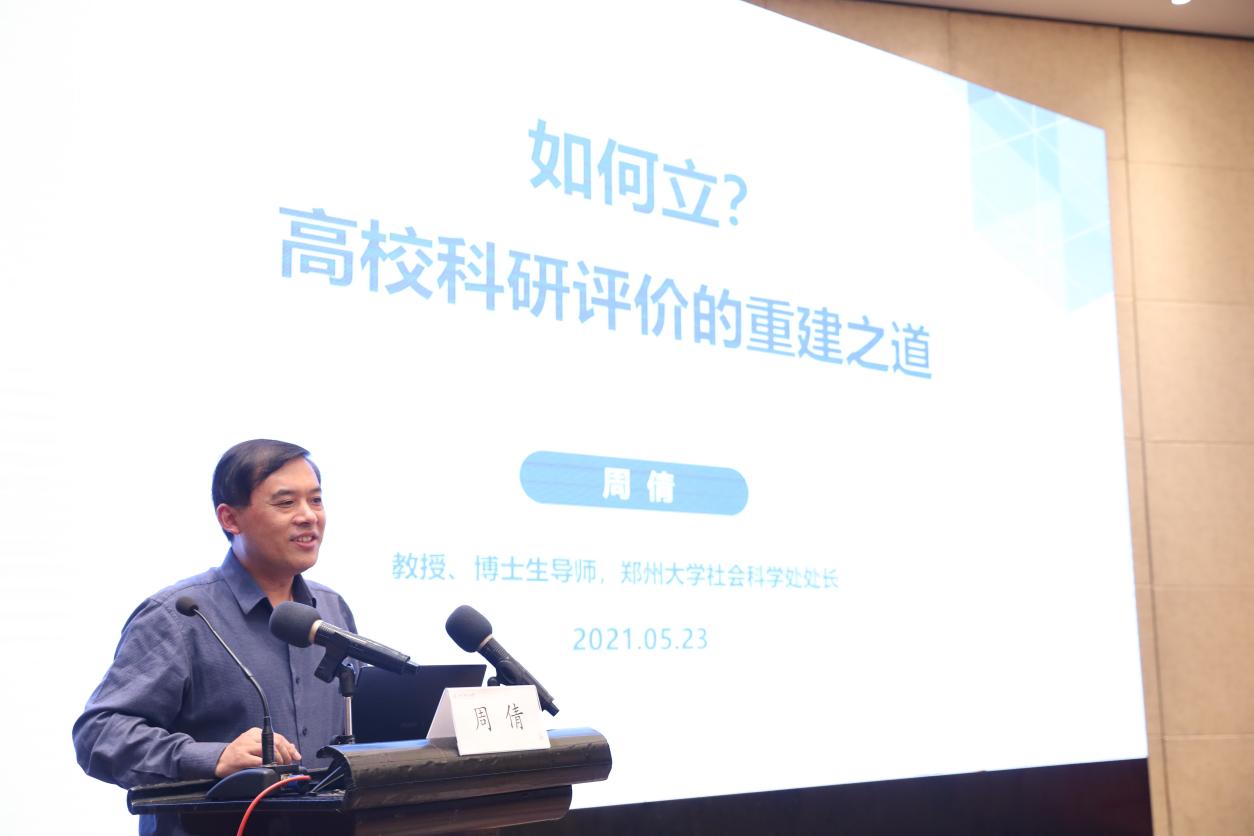 郑州大学社会科学处处长、教育学院周倩教授,做主题报告《如何立?高校科研评价的重建之道》,从科研评价的政策背景、我国科研评价的类型与原则、新时代科研评价的重建三个方面展开。