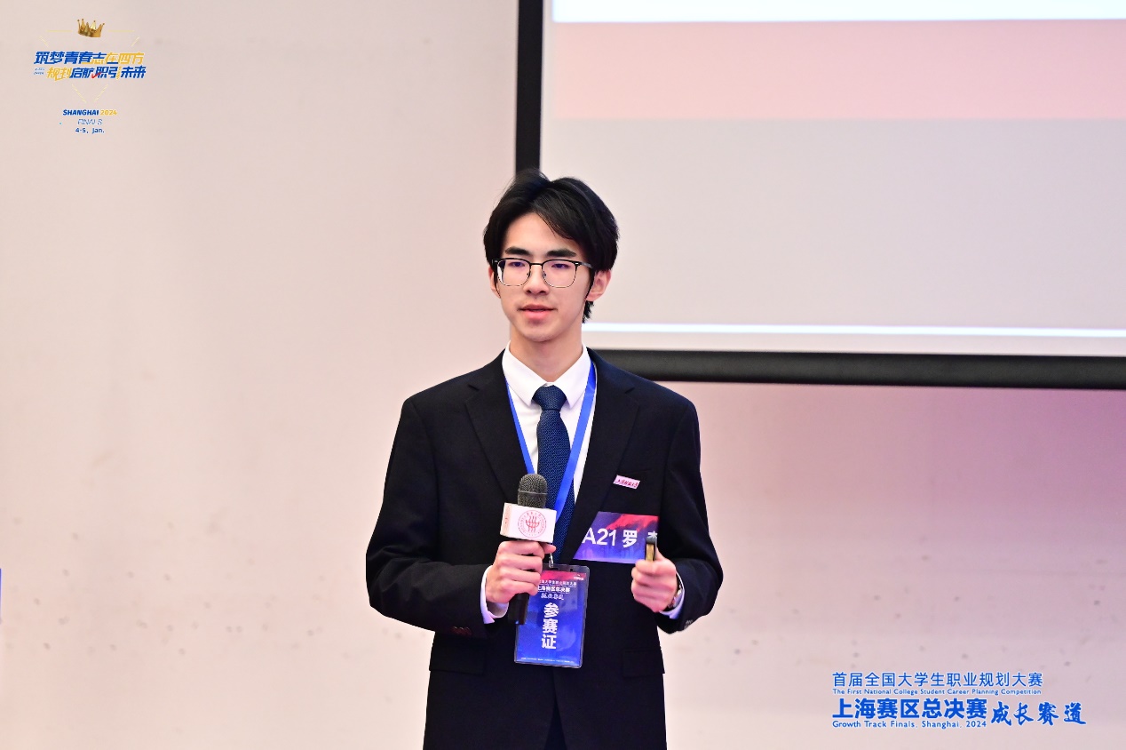 罗森:首先非常感谢学校对本次比赛的大力支持,这次比赛作为首届全国性职业规划赛事,体现了当下国家对大学生职业生涯教育的高度重视,同时这次比赛将来自不同学校、不同专业的同学齐聚一堂,更是一次“跨越式”的学习交流舞台。有幸进入成长赛道决赛,对于像我一样的低年级学生是个难得的机会,备赛过程不仅有助于我们构建自己个性化的职业发展模型,还深化了我们对于自己专业的认知,有助于明确本科期间的阶段性目标。此外,在“跨越式”交流中,我们能够看到诸多来自不同学校、专业学生的发展现状,有助于我们进行横纵向比较,开拓发展视野,建立更加清晰的自我认知。经历这次比赛过后,我将会更加努力,为实现自己的职业理想而奋斗。同时,我希望更多上财学子能够参与到这场赛事中,向社会展现我们上财人的精神风貌与使命担当!