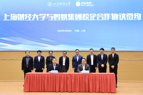 3月8日,上海财经大学与蚂蚁集团在校签署校企合作协议,双方将在人工智能、大模型等前沿科技的高端人才培养、科研攻关等方面深层次合作,全面提升金融专业人才培养水平。上海财经大学校长刘元春、蚂蚁集团董事长兼CEO井贤栋出席签约仪式。上海财经大学副校长李增泉、蚂蚁集团副总裁王晓航代表双方签署合作协议。仪式由上海财经大学校长助理刘莉亚主持。