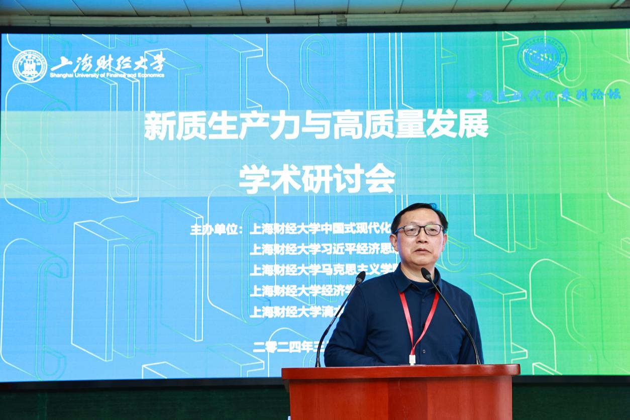 为认真学习贯彻中共中央政治局第十一次集体学习精神,上海财经大学中国式现代化研究院、习近平经济思想研究院、马克思主义学院、经济学院、滴水湖智库于2024年3月23日联合主办“新质生产力与高质量发展”学术研讨会,来自中国社会科学院、北京大学、清华大学、中国人民大学、上海社会科学院、曲阜师范大学、扬州大学等高校和研究机构的知名专家学者以及我校师生、媒体代表60多人出席了会议。与会专家就新质生产力的重大理论和现实问题进行深入研讨,产出了丰富的理论成果。