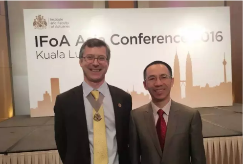 图为我校校友赵宇龙博士(右)参加今年三月在吉隆坡的IFoA亚洲会议时和President-elect Colin Wilson 合影