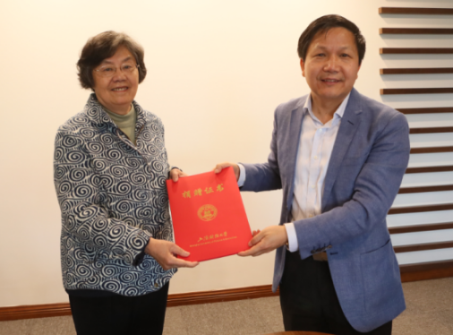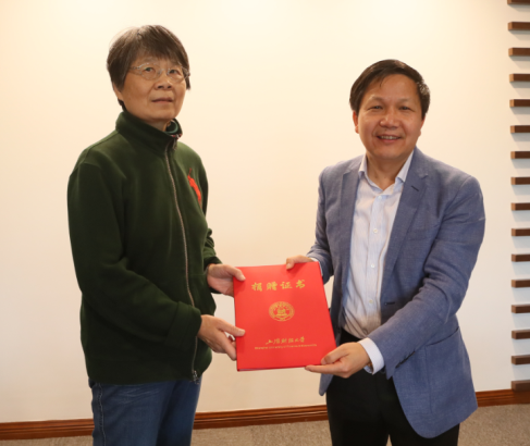 仪式中,捐赠者与我校签署了捐赠协议书。随后,陈信元代表学校接受了捐赠,并为马小春、马小松、马小华女士颁发了捐赠证书。