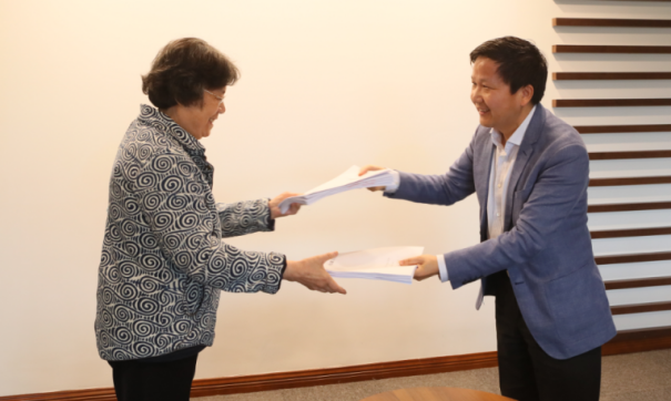 最后,陈信元代表学校向马小春、马小松、马小华女士表示诚挚的感谢,对马飞海先生保护和传承珍贵历史文物的热忱致以崇高的敬意;并表示马飞海先生及其亲属的这种“赠人玫瑰,手留余香”的精神境界和崇高风范将会历久弥新,同时也彰显了革命家庭的优良传统与敦厚家风;同时强调学校将以此次捐赠为契机,积极做好这批古钱币的标识、展出和研究,努力讲好钱币故事、传播钱币知识、弘扬钱币文化,在校内外积极传播马飞海先生及其亲属的捐赠事迹。