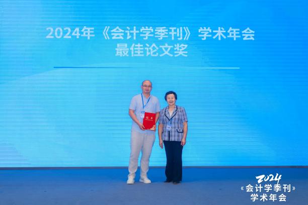 全体参会人员通过匿名投票评选2024年《会计学季刊》学术年会最佳论文奖和最佳评论人奖。郭照蕊、季婧、黄俊撰写的《客户之风,言辞之波:客户关系型交易与公司管理层语调》一文获评最佳论文奖,阴慧芳获评最佳评论人奖。《会计学季刊》顾问委员会委员、厦门大学曲晓辉教授,《会计学季刊》主编、上海财经大学靳庆鲁教授分别为获奖人颁发荣誉证书。
