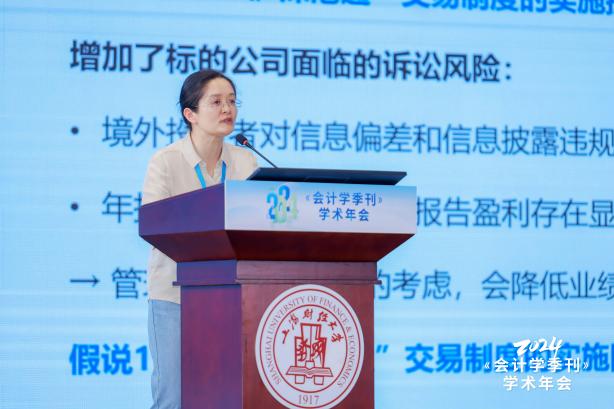 厦门大学饶灿、贵州财经大学殷皓洲、兰州大学孙俊勤、浙江财经大学陈文强、上海对外经贸大学张天舒、上海大学吴澳成以及上海师范大学郭照蕊分别分享了题为《宗族文化能够抑制企业社会责任“表里不一”吗?——来自民营上市公司的证据》《审计委员会召集人内部兼任与内部控制质量:专业溢出抑或关系约束?》《企业研发对中小投资者信息需求的影响:基于交易所互动平台的证据》《业绩考核复杂度与企业高质量发展:赋能还是扭曲?》《资本市场开放与公司业绩预告-基于沪深港通的经验证据》《企业区位竞争与审计师风险应对》《客户之风,言辞之波:客户关系型交易与公司管理层语调》的论文。