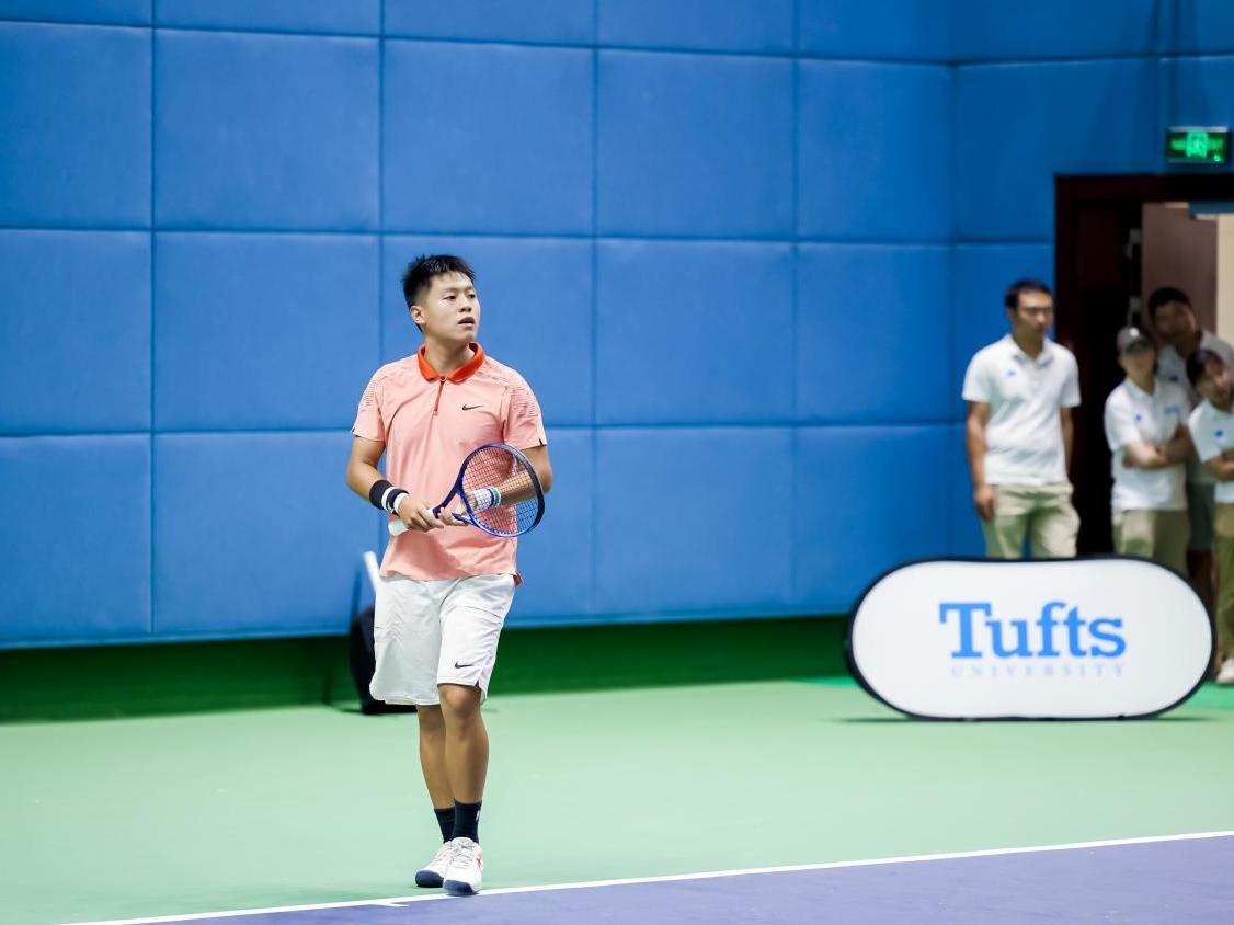 8月15日下午,中美友谊赛团体赛在旗忠网球中心室内馆打响。来自我校商学院的2021级本科生邓兆桦同学在中方第一场惜败的情况下,临危不惧,挽救了两个赛点,以7:5拿下比赛,为中方赢下关键一场。最终中方男队以2:1逆转美方男队,取得了男子团体冠军。