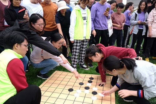 此次趣味运动会包括两人三足、踢毽、趣味五子棋、飞镖、高尔夫推等项目,在比赛过程中,老师和同学们掌声、笑声、喝彩声此起彼伏、精彩纷呈,既培养了团队合作精神,又兼顾趣味性和互动性。在学院的“三十人三十一足”趣味比赛中,同学们齐声喊着口号,即使有人摔倒也不放弃,互相搀扶着走向终点,为学院赢取荣誉。