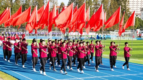 随后,各学院代表队方阵迈着铿锵有力的步伐依次进入会场,喊着响亮的口号,精神抖擞、意气风发,昂首阔步经过主席台,接受校领导的检阅,展现了当代大学生的卓越风采。由七十多名教工组成的联队既有在课堂上传播知识的任课教师,又有在食堂、宿舍为大家提供保障的后勤师傅,还有维持校园秩序的行政人员、辅导员团队,他们充满活力、神采奕奕。