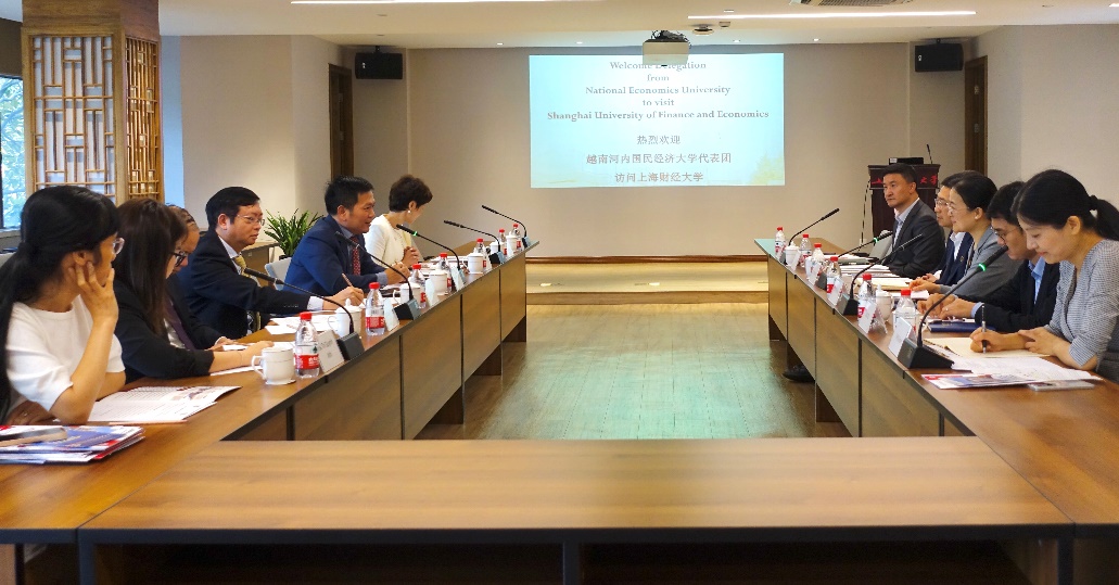 随后,双方共同回顾了现有学生交换项目的执行情况,就未来学生短期交流项目、科学研究的合作意向初步达成共识。越南国民经济大学商学院院长Ta Van Loi、经济与公共管理学院院长Do Thi Hai Ha、国际经济管理学院院长Le Trung Thanh、高等教育学院院长Vu Van Ngoc、国际合作处职员Ha Thi Quynh Anh、教务处职员Tran Thi Thanh Ha;上海财经大学国际文化交流学院院长董静、国际教育学院院长沈晖、商学院副院长孙琦参加会见。