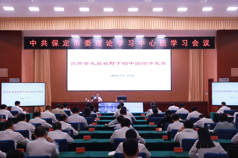 7月25日下午,保定市委书记党晓龙主持召开市委理论学习中心组学习会议,邀请刘元春校长就学习中央政治局会议精神进行辅导。刘元春校长以《高质量发展视野下的中国经济复苏》为主题,从高质量发展的视角深刻分析当前中国经济整体形势,对宏观经济复苏提出前瞻性思考。保定市委理论学习中心组成员、市政府有关副市长及市直有关单位主要负责人等参加会议。