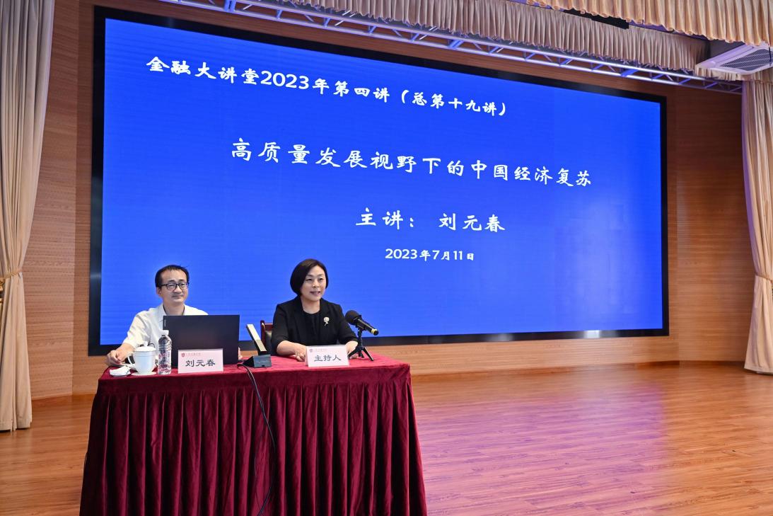 在仪式结束后,由刘元春校长在上海金融法院“金融大讲堂”对全体干警进行题为《高质量发展视野下的中国经济复苏》的主题教育党课讲座。刘校长重点就经济高质量发展的内涵,当前中国经济遇到的难点以及解决方案等,结合国际国内的新发展格局进行了深入浅出的讲授,获得在场一百多名听众的一致赞誉。