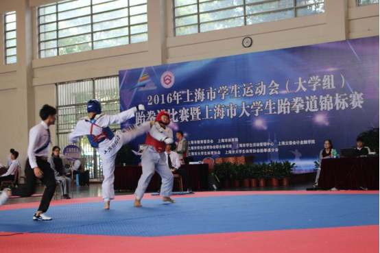 我校此次参加上海市大学生跆拳道运动会展现出了良好的竞技状态和精神风貌,不论是竞技运动员还是场边加油呐喊的其他队员都精神饱满斗志昂扬,也充分表现出了跆拳道比赛中的体育道德与礼貌。此次比赛充分体现出了财大学子的精神面貌,与体育锻炼中不断自我提升的身体素质。以良好的礼仪,竞技精神展现出财大认真踏实,勇往直前的体育作风,以良好的状态和精神面貌展现出了财大的体育魂。