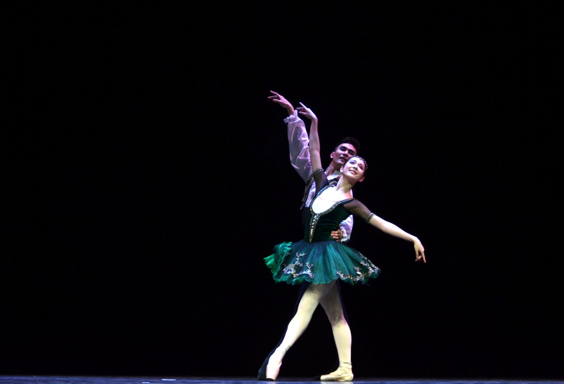 随着熟悉的音乐响起,世界经典芭蕾舞剧《天鹅湖》第二幕呈现在舞台山,演员们成熟、大气的台风和唯美、动人的表演,讲述了这段王子和公主间的浪漫爱情故事。随之而来的,是今年连续在瓦尔纳、上海等国际芭蕾大赛上获得最佳编舞奖的现代舞作品——《烟之外》,该舞根据台湾诗人洛夫的诗歌《烟之外》创作,讲述了一段对时间与爱的思考。作为辽芭主演阵容中最年轻的力量,双人舞演员敖定雯和王占峰为大家表演了《堂·吉诃德》的经典选段,他们今年刚刚在上海国际芭蕾舞比赛中摘金夺银,赞誉归来的他们用精湛的舞技和完美的表现力令现场观众折服。