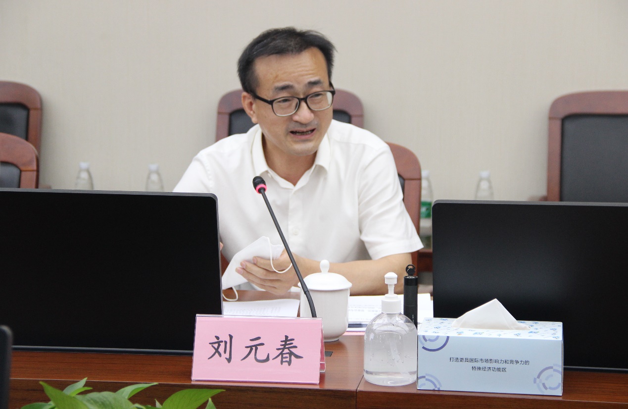 座谈会上,刘元春校长介绍了此次带队前来学习调研的目的。他表示,高校应该多到改革开放的最前沿去学习与交流,更好地将理论与实践进行对接。随后,临港新片区发展改革处处长吴晓峰从总体概况、开发建设体制机制、开发建设任务推进情况等方面对上海自贸试验区临港新片区做了情况介绍。