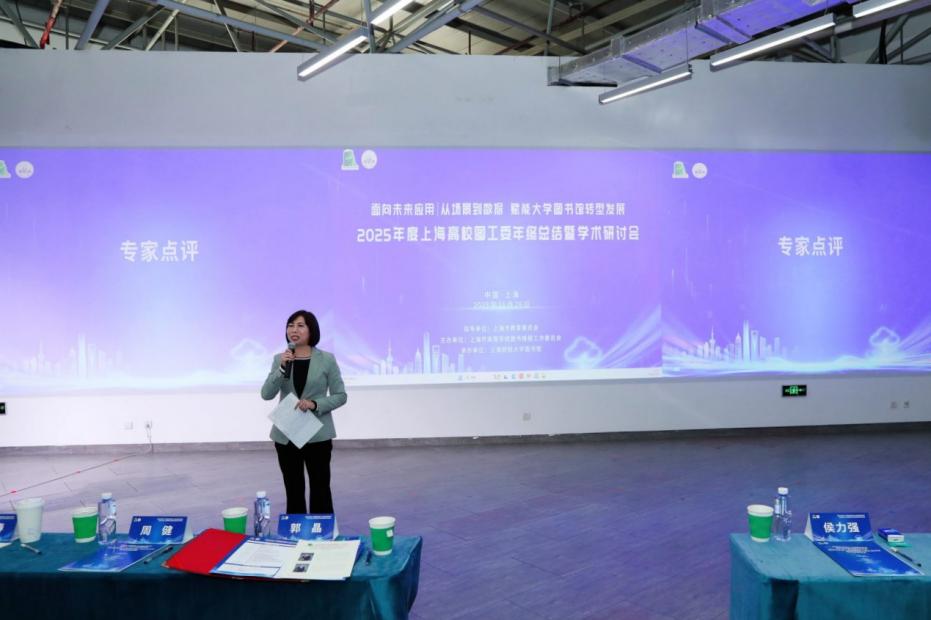 馆员业务讨论环节,上海财经大学图书馆信息技术部主任李慜、学科服务部学科馆员仝召娟、文献资源建设部期刊资源业务主管温昕、特藏部馆员田野、阅读推广部主任周丽分别作业务分享汇报。图工委常务副秘书长郭晶对五场报告给予充分肯定,认为上海财经大学图书馆分享的项目建设站位高、理念新,场景准、经验实,为同行提供难得的经验。