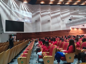 10月23日下午,第五届进博会上财“小叶子”们集结于学校艺术中心,接受上岗动员。连续四年的中国国际进口博览会志愿服务项目为我校第二课堂“大思政”实践课堂建设搭建了宝贵平台,动员会上,团委老师全面梳理了进博会的概况,回顾历届上财“小叶子”服务进博的故事,邀请往届“小叶子”分享经验收获和成长感悟。校团委书记沈亦骏老师引用习近平总书记在二十大报告中对青年的勉励——“让青春在全面建设社会主义现代化国家的火热实践中绽放绚丽之花”,动员全体小叶子牢记 “厚德博学 经济匡时”校训,打造一支“信得过、拉得出、干得好”志愿者团队,向世界展现专业得体、积极昂扬的中国青年形象。