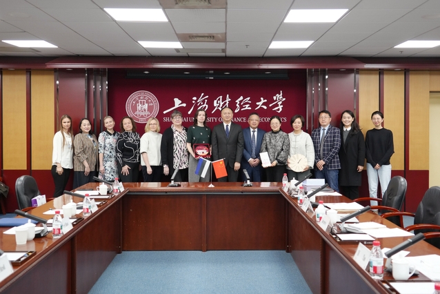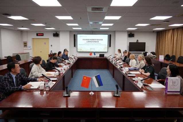 3月24日,2026“汉语桥”爱沙尼亚教育代表团到访上海财经大学,校党委书记、高等教育研究院院长许涛会见代表团一行并举行会谈。我校图书馆馆长、高等教育研究院副院长应望江,基础教育集团主任王晓露,国际文化交流学院院长、孔子学院工作办公室主任董静,公共管理学院教育政策与管理系主任胡光元等参加会见。