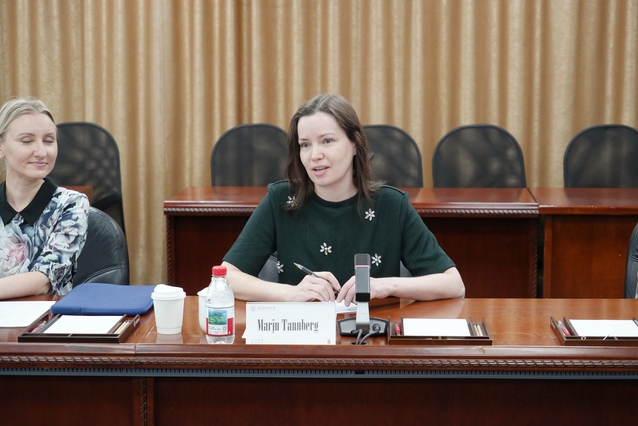 爱沙尼亚教育代表团团长、塔林穆斯塔梅国立高中Marju Tannberg女士代表爱方致辞。她对上海财经大学的热忱接待表示感谢,对我校塔林孔子学院在爱沙尼亚中小学汉语教育工作中取得的丰硕成果给予高度评价。她表示,目前爱沙尼亚已有越来越多中小学计划增设汉语课程,此次访问将助力爱方更好地走进中国、了解中国教育,增进双向人文交流。