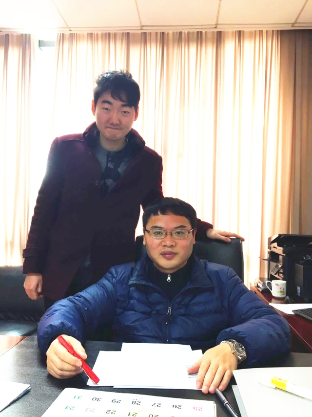 金宇超(图后)和他的导师靳庆鲁教授(图前)